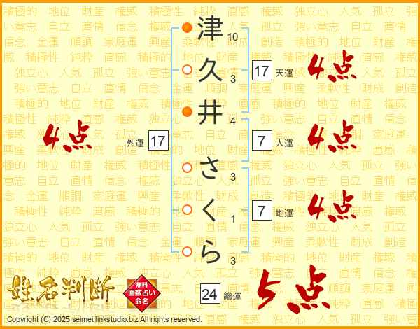 津(10画)久(3画)井(4画) さ(3画)く(1画)ら(3画)
