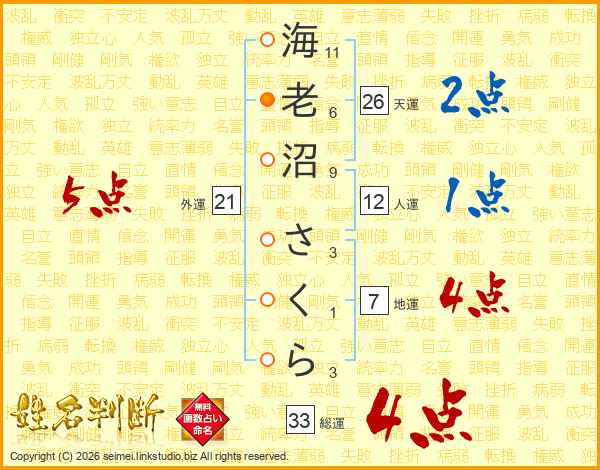 海老沼さくらさんの総運は33画の4点!