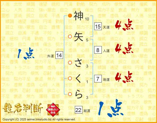 神(10画)矢(5画) さ(3画)く(1画)ら(3画)