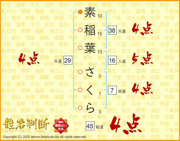 素(10画)稲(15画)葉(13画) さ(3画)く(1画)ら(3画)