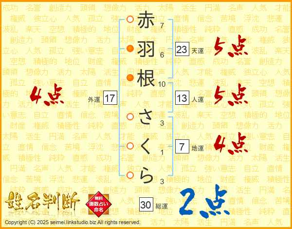 赤羽根さくらさんの天運は23画の5点