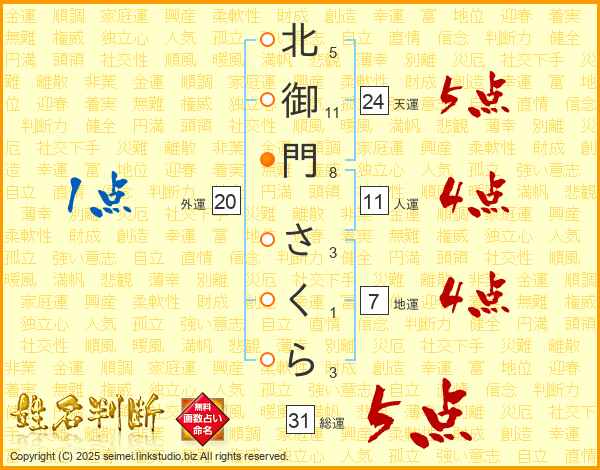 北(5画)御(11画)門(8画)  さ(3画)く(1画)ら(3画)