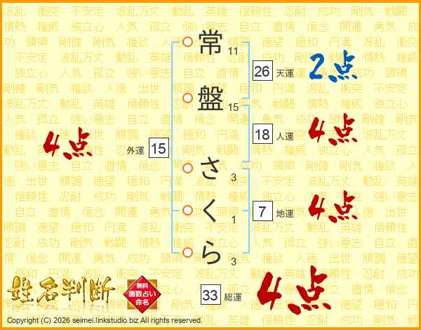 常盤さくらさんの総運は33画の4点!