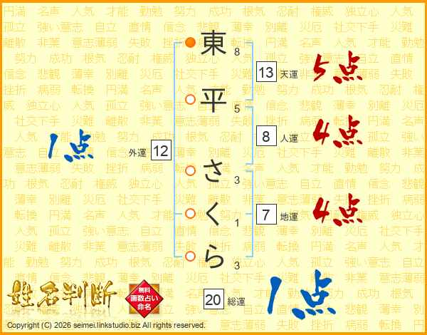 東平さくらさんの天運は13画の5点!