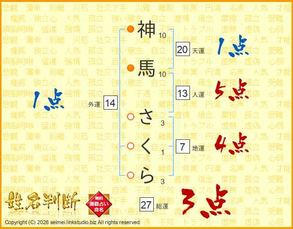 神馬さくらさんの総運は27画の3点!