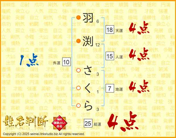 羽(6画)渕(12画) さ(3画)く(1画)ら(3画)