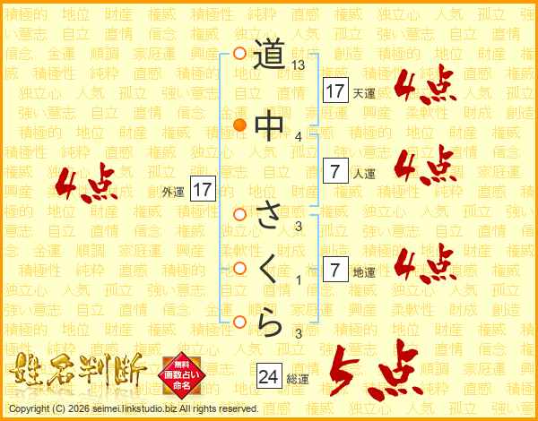 道(13画)中(4画) さ(3画)く(1画)ら(3画)