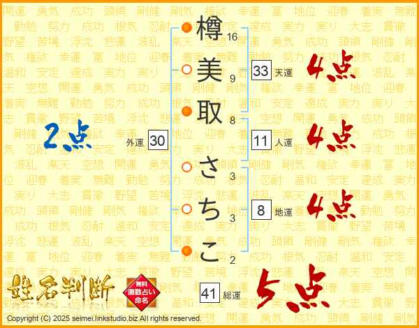 樽(16画)美(9画)取(8画) さ(3画)ち(3画)こ(2画)