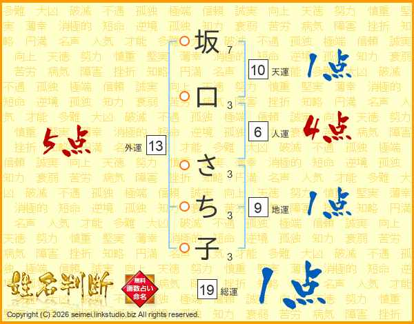 坂口さち子さんの外運は13画の5点!