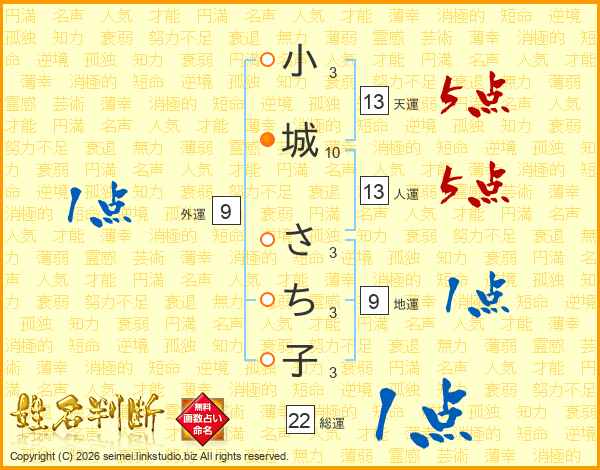 小城さち子さんの天運は13画の5点!