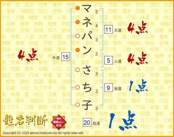 マネパンさち子さんの総運は20画の1点