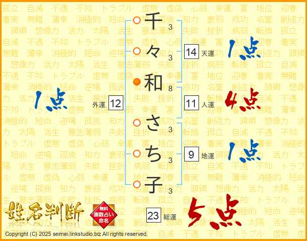 千(3画)々(3画)和(8画) さ(3画)ち(3画)子(3画)