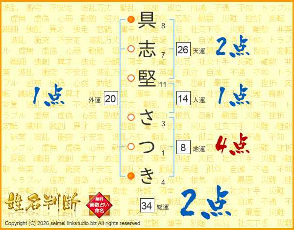 具志堅さつきさんの総運は34画の2点!