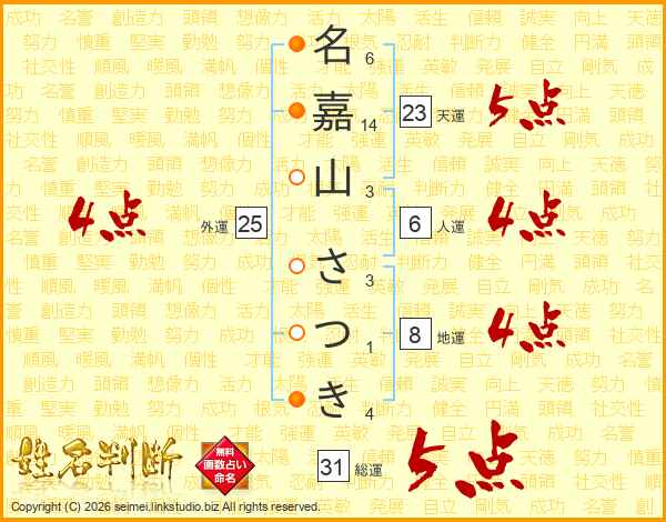 名嘉山さつきさんの総運は31画の5点!