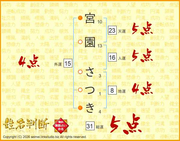 宮(10画)園(13画) さ(3画)つ(1画)き(4画)