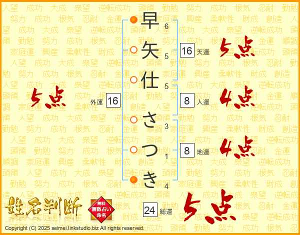 早(6画)矢(5画)仕(5画) さ(3画)つ(1画)き(4画)