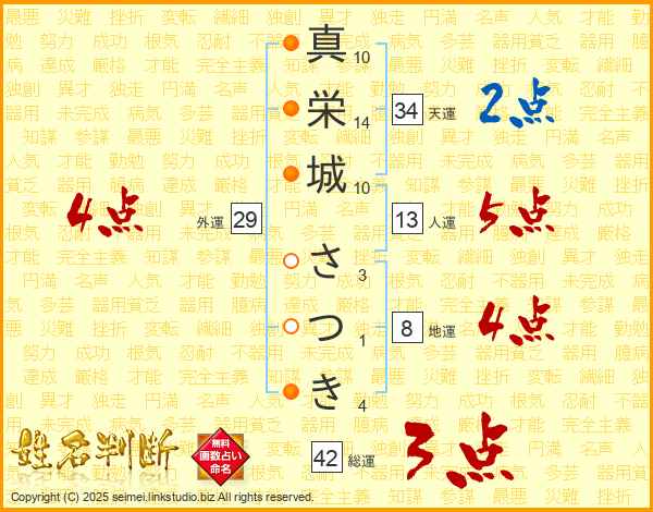 真(10画)栄(14画)城(10画) さ(3画)つ(1画)き(4画)