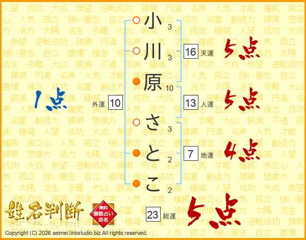小川原さとこさんの総運は23画の5点!