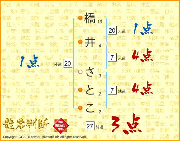 橋井さとこさんの人運は7画の4点!