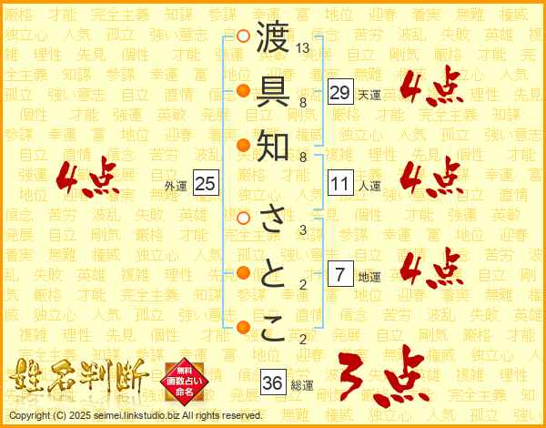渡具知さとこさんの総運は36画の3点!