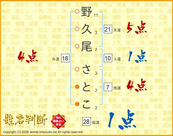 野久尾さとこさんの外運は18画の4点!