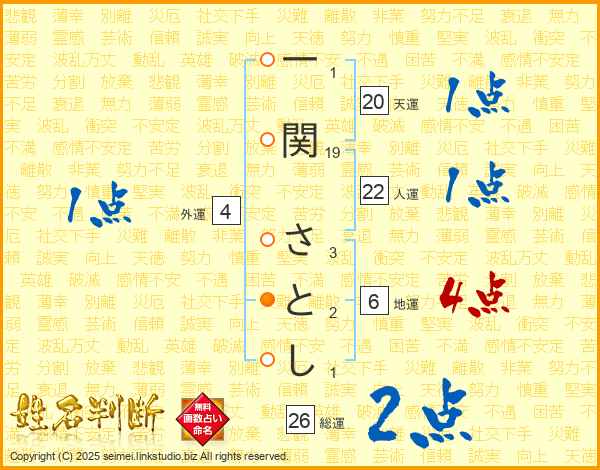 一関さとしさんの総運は26画の2点!