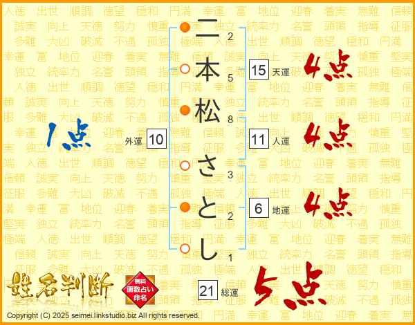 二(2画)本(5画)松(8画) さ(3画)と(2画)し(1画)