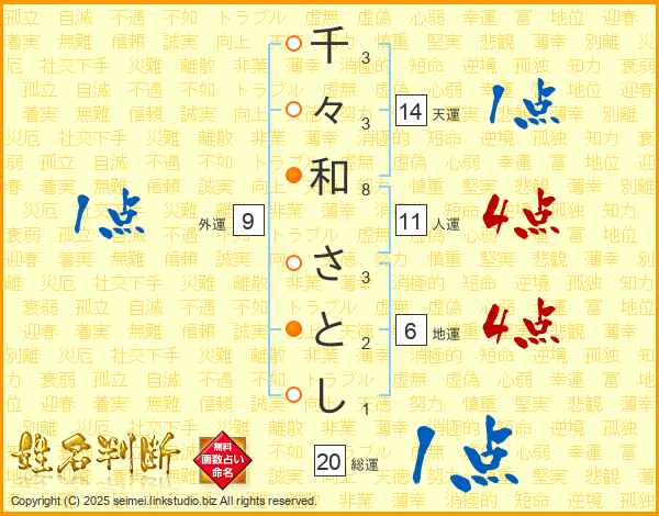 千々和さとしさんの総運は20画の1点!