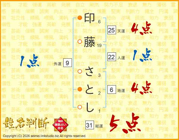 印藤さとしさんの総運は31画の5点!