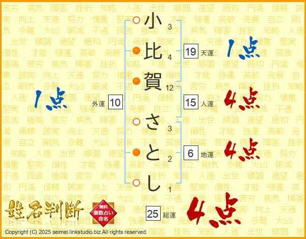 小(3画)比(4画)賀(12画) さ(3画)と(2画)し(1画)