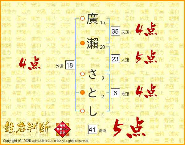 廣瀨さとしさんの総運は41画の5点!
