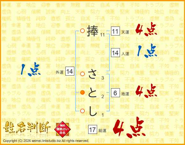 捧さとしさんの総運は17画の4点!