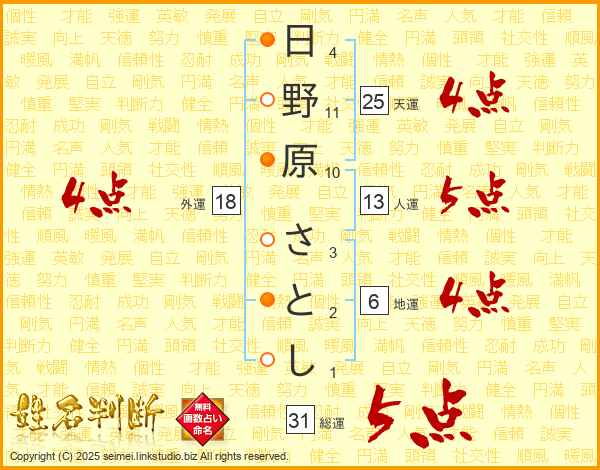 日野原さとしさんの外運は18画の4点!