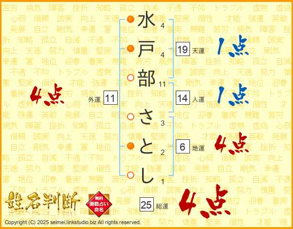 水戸部さとしさんの総運は25画の4点!