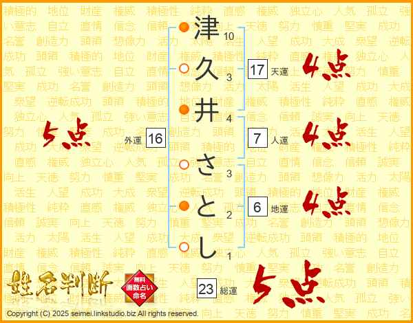 津(10画)久(3画)井(4画) さ(3画)と(2画)し(1画)