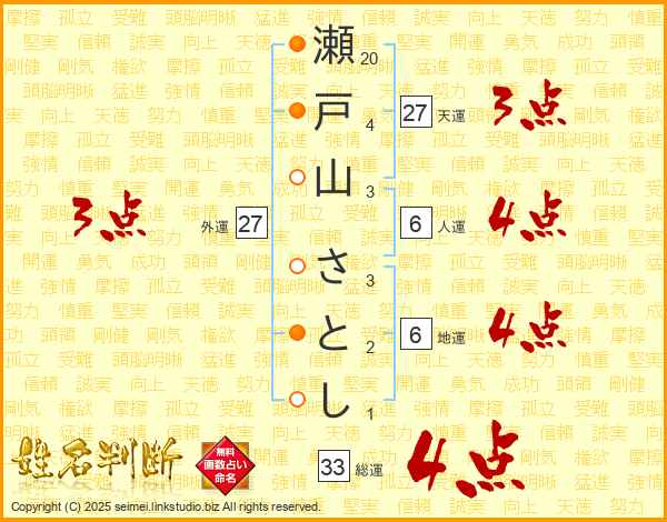 瀬戸山さとしさんの総運は33画の4点!