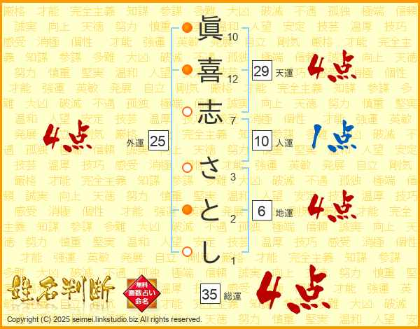 眞喜志さとしさんの総運は35画の4点!