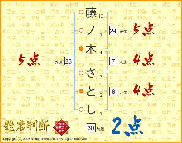 藤ノ木さとしさんの天運は24画の5点!