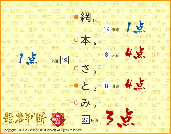 網本さとみさんの総運は27画の3点!