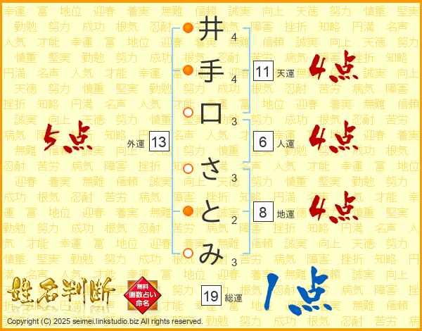 井手口さとみさんの総運は19画の1点