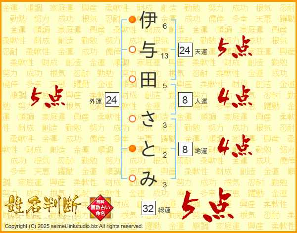 伊(6画)与(13画)田(5画) さ(3画)と(2画)み(3画)