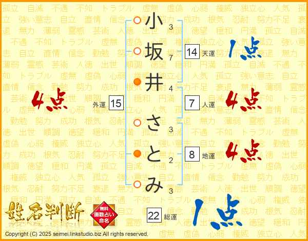 小坂井さとみさんの人運は7画の4点