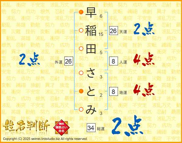 早(6画)稲(15画)田(5画) さ(3画)と(2画)み(3画)