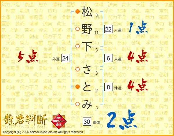 松(8画)野(11画)下(3画) さ(3画)と(2画)み(3画)