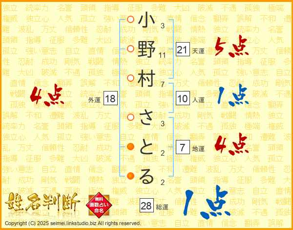 小野村さとるさんの総運は28画の1点!