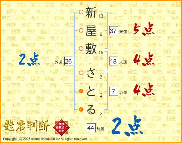 新屋敷さとるさんの天運は37画の5点!