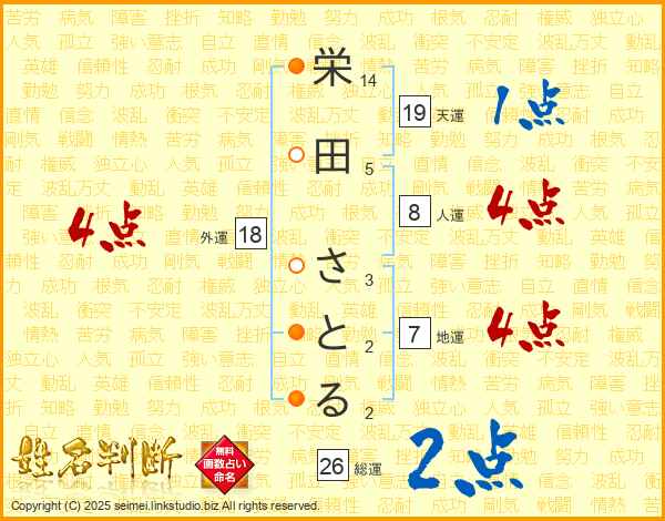 栄(14画)田(5画) さ(3画)と(2画)る(2画)