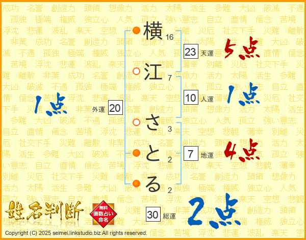 横江さとるさんの総運は30画の2点!