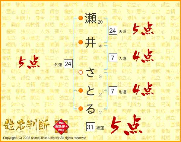 瀬(20画)井(4画) さ(3画)と(2画)る(2画)