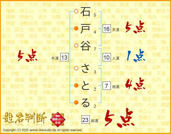 石(5画)戸(4画)谷(7画) さ(3画)と(2画)る(2画)